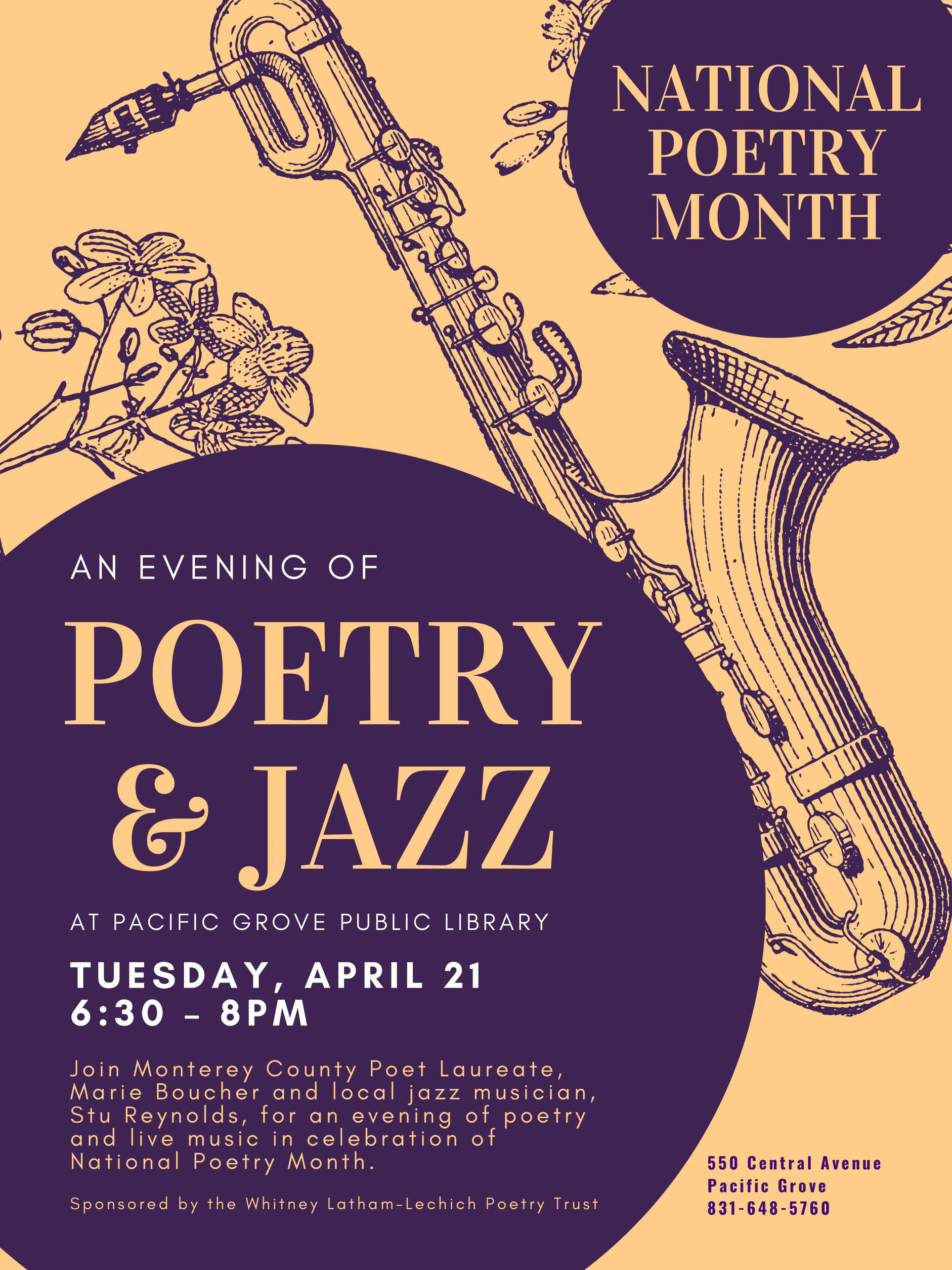 The 6th Annual International Poetry Week in the Monterey Bay area took place the week of April 21st in 2025. Set during National Poetry Month (April), this week-long series of events in Monterey, with a pre-event in Carmel on Saturday, April 19th, was hosted by International Poetry Gathering of Monterey in partnership with Middlebury Institute of International Studies at Monterey (MIIS), and Kollaborativ Events.The first Poetry Week started at MIIS and we are so delighted to be expanding to include multiple events, venues, poets and musicians from out of the area.All events were free and open to the public, unless otherwise stated.See our schedule of events and venues in our Calendar below.